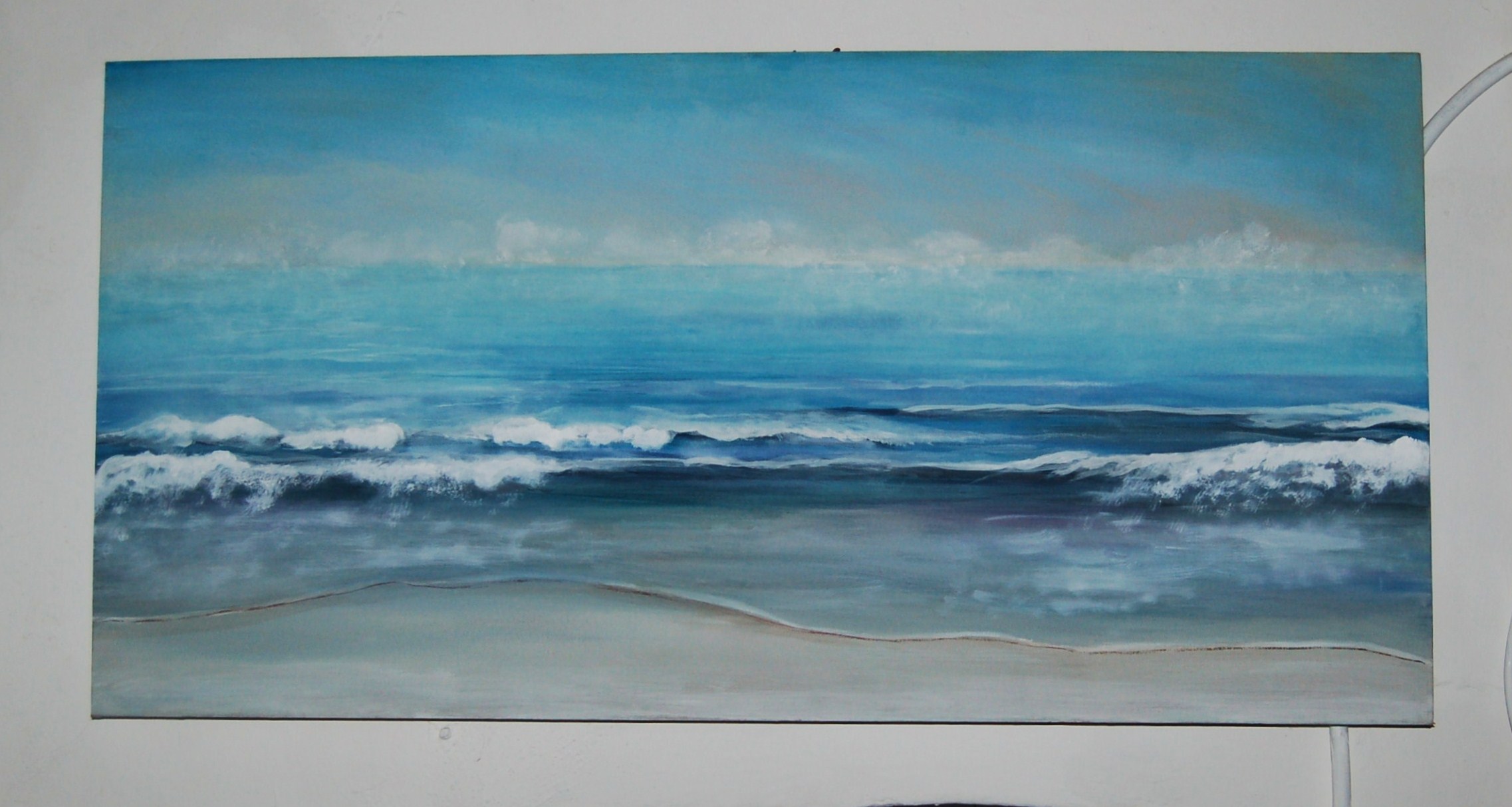 I decided that a seascape would fit the canvas very well , would be quick and would be fun because I could let myself go, no fiddly bits.