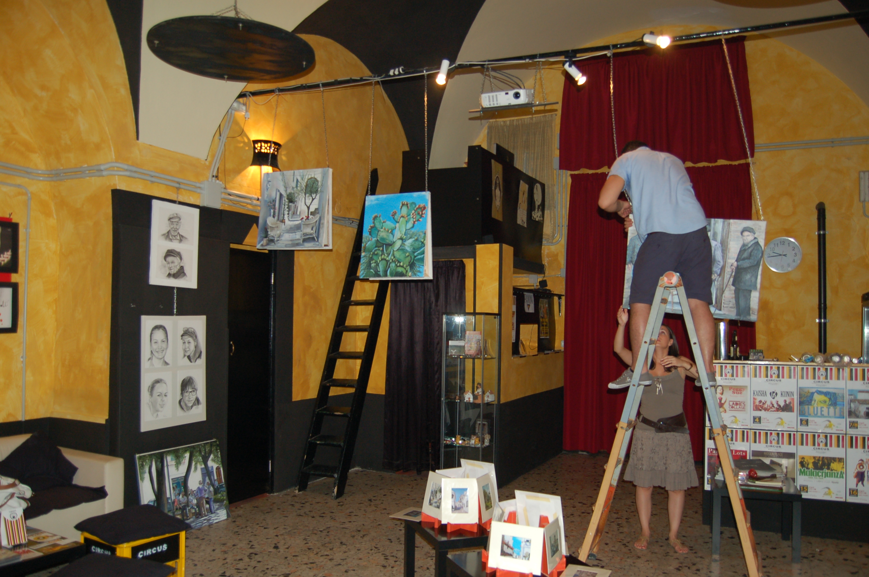 The people who run CIRCUS (It stands for CENTRO DI INIZIATIVA E RICERCA PER LA CULTURA E LO SPETTACOLO.) were great. They hung most of my paintings, while balanced precariously on a ladder, made all the publicity, encouraged people to come in off the street and made me feel very welcome.