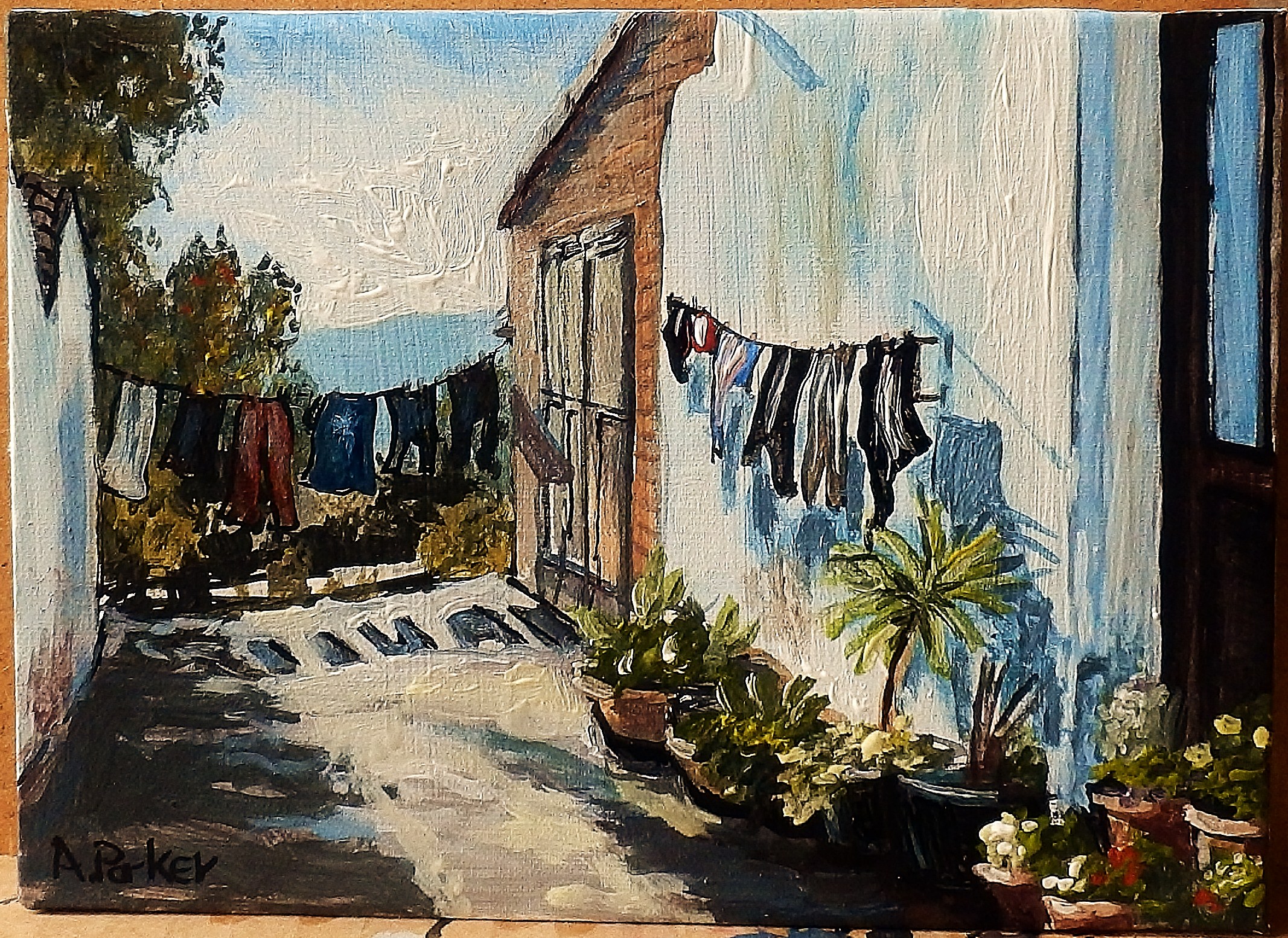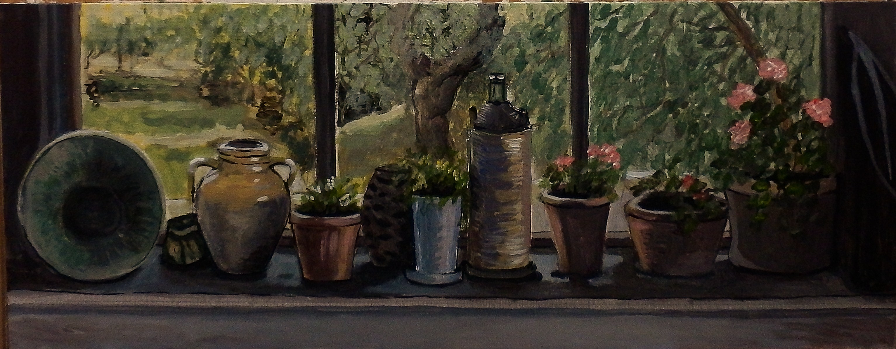 But this year I have hardly been without a commission. I can’t remember how many portraits I have done- most of which I don’t put online as they are more personal and often gifts. I have also just finished a large painting of mountains and a small village and I remember painting a large scene with poppies. Then there was a long narrow Pisticci scene . I did a pencil drawing of a group of 6 people and a small painting of hundreds of little houses.I have two more portraits waiting to be done and more work after that. I think I have had on average two commissions per month.
