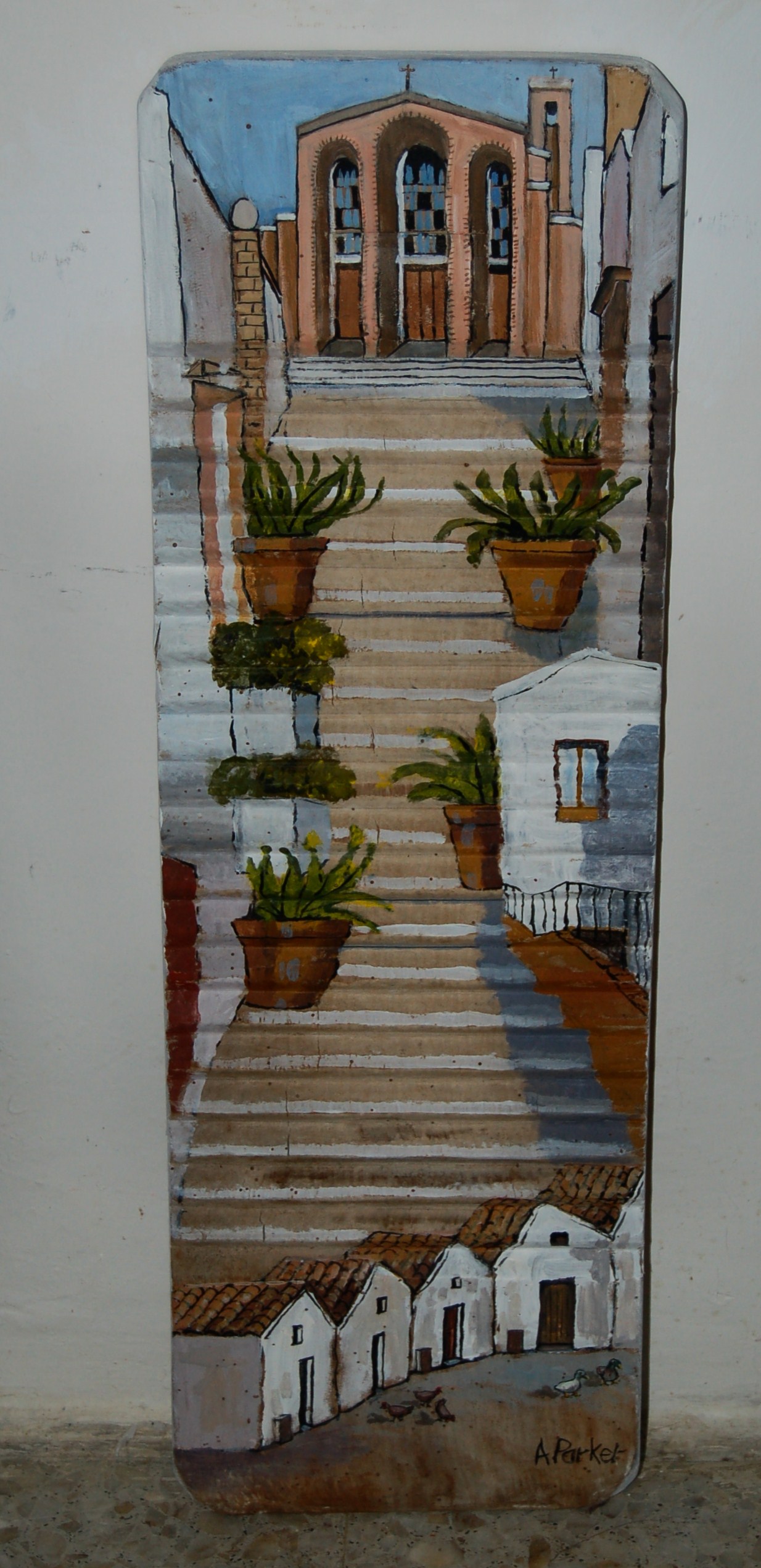 And I have also painted several portraits, drawn various things – mostly circular and most recently I have painted scenes on 3 washboards. You know the old wooden crinkly things that people used to use to scrub clothes on.