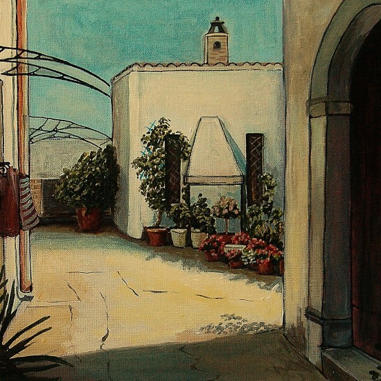 I suppose I will just have to get over it. In the meantime I have sold two paintings and finished a triple portrait commission. And painted some more Pisticci scenes to put in the restaurant- one of which – the one with the blue door , I am very pleased with.