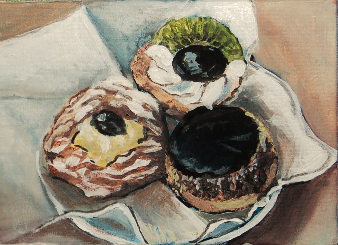 But I am getting on very well painting food and drink and have just started a series of people paintings.