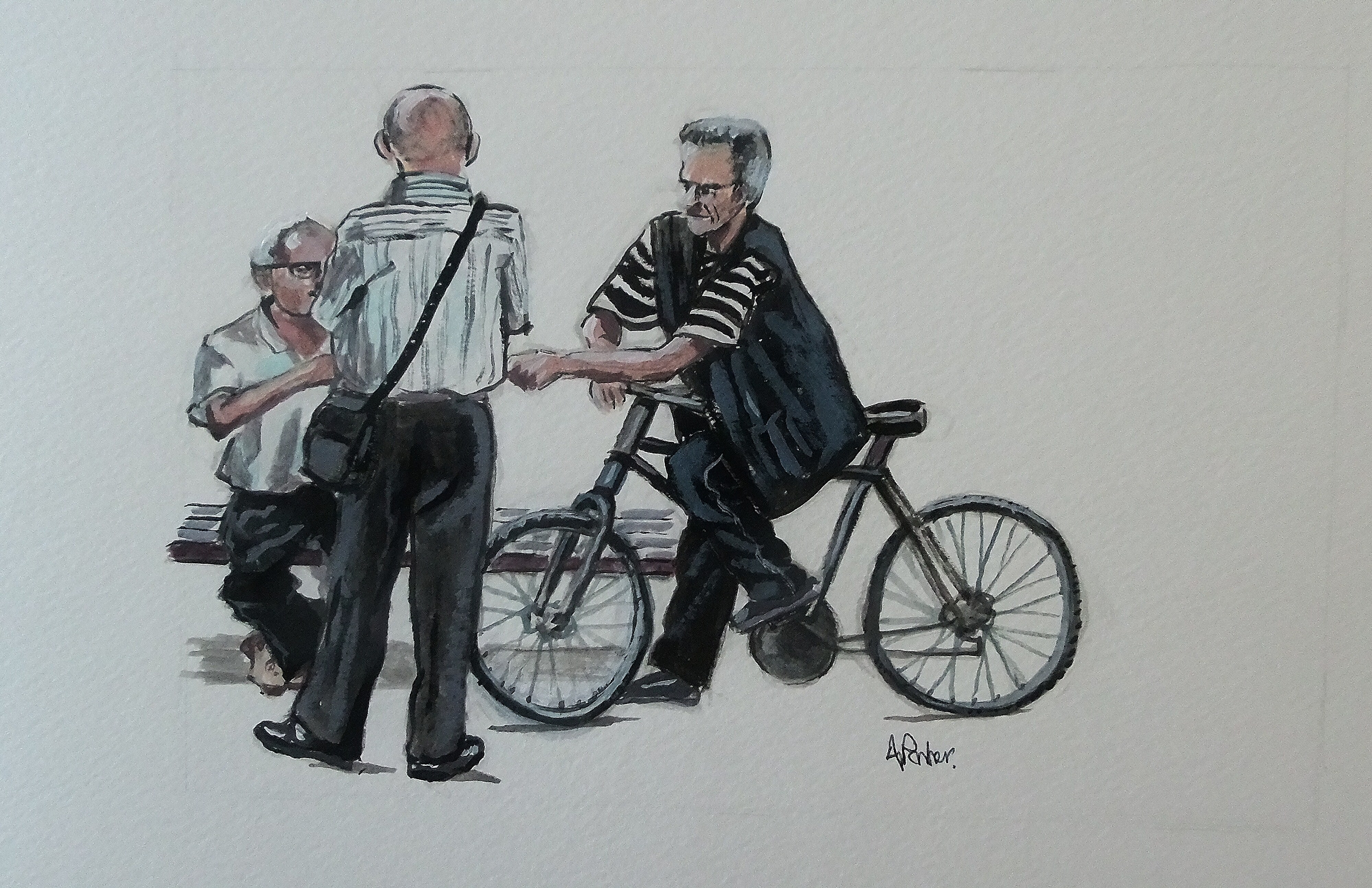 I have not sold anything for 2 months but it has given me the opportunity to try things I would like to do. I have been taking part in #figurejuly on twitter and although not completing something every day have been drawing,then painting figures -trying to show some communication between them.