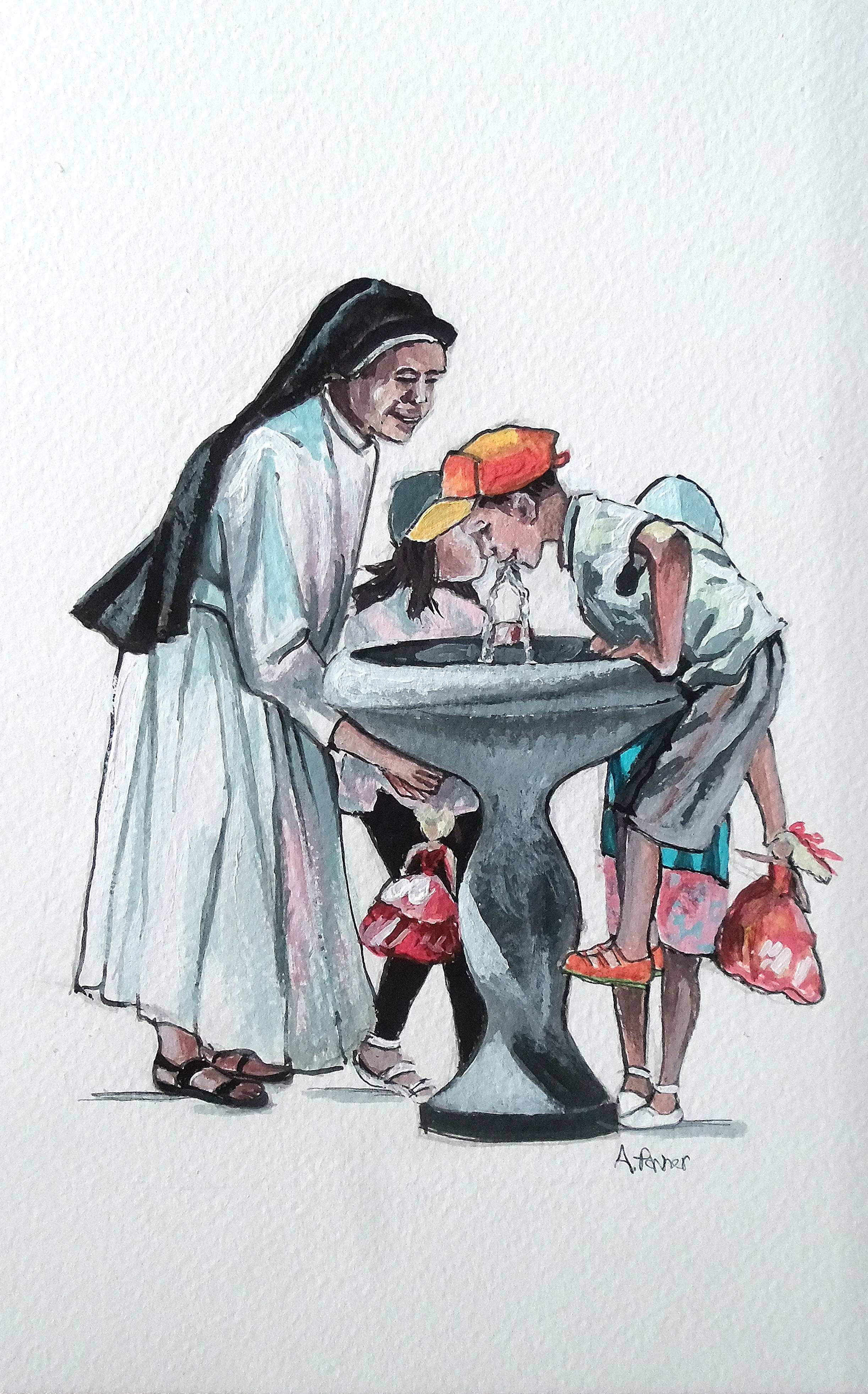 Spurred on by this I changed my painting hanging in vladimiro’s bar in town and on the way back a lady from one of the shops in the piazza offered to put some of my paintings in her window for the feste. I have given her prints to sell to tourists in the meantime.