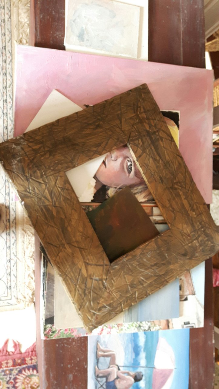 I spent part of yesterday during the storm, in my studio , in pisticci, looking out old used canvases, bits of canvas and an old frame in preparation for my creative endeavours. I may do some scavenging for wood and stones and material etc later.