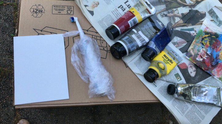 Eevi , however, more than made up for my lack. When she couldn’t find an old toothbrush she got out an Electric one instead. Luckily she made 2 little videos so you can see that it is possible to paint with an electric toothbrush.