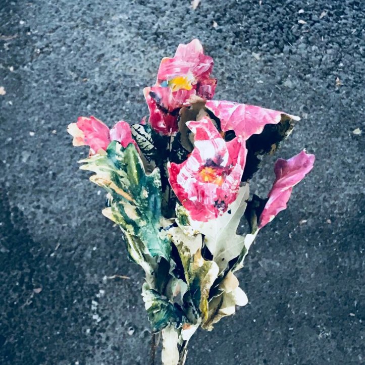 Eevi meantime was painting roses…in a way. As she had no roses she painted leaves to look like roses.