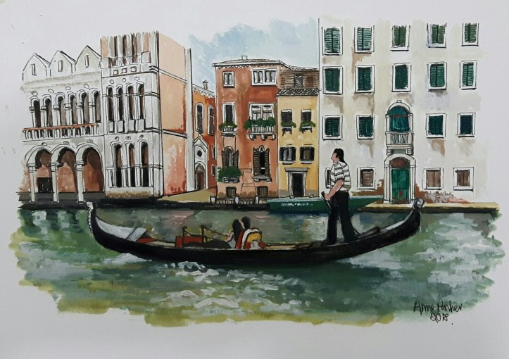 I have been painting portraits and townscape s and other subjects for the last 20 years in mostly acrylics. But am very much enjoying trying something new with pen and watercolour.