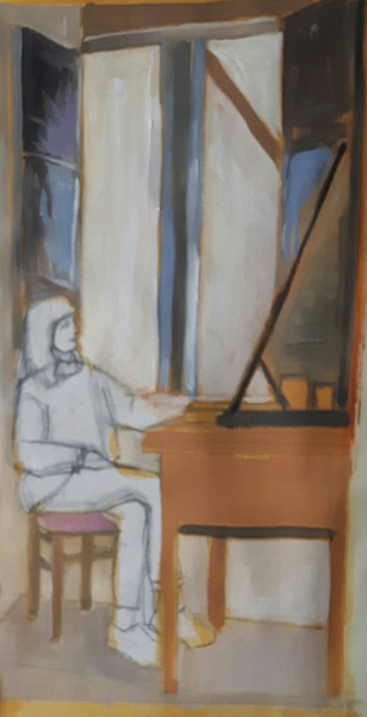 As it was not so warm today I started my self portrait. I hope it works out ok. Its at the ” what a mess its never going to work stage”. That is normal.