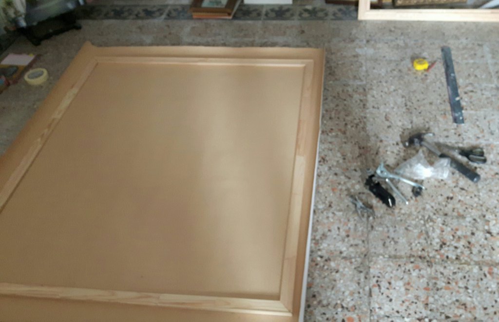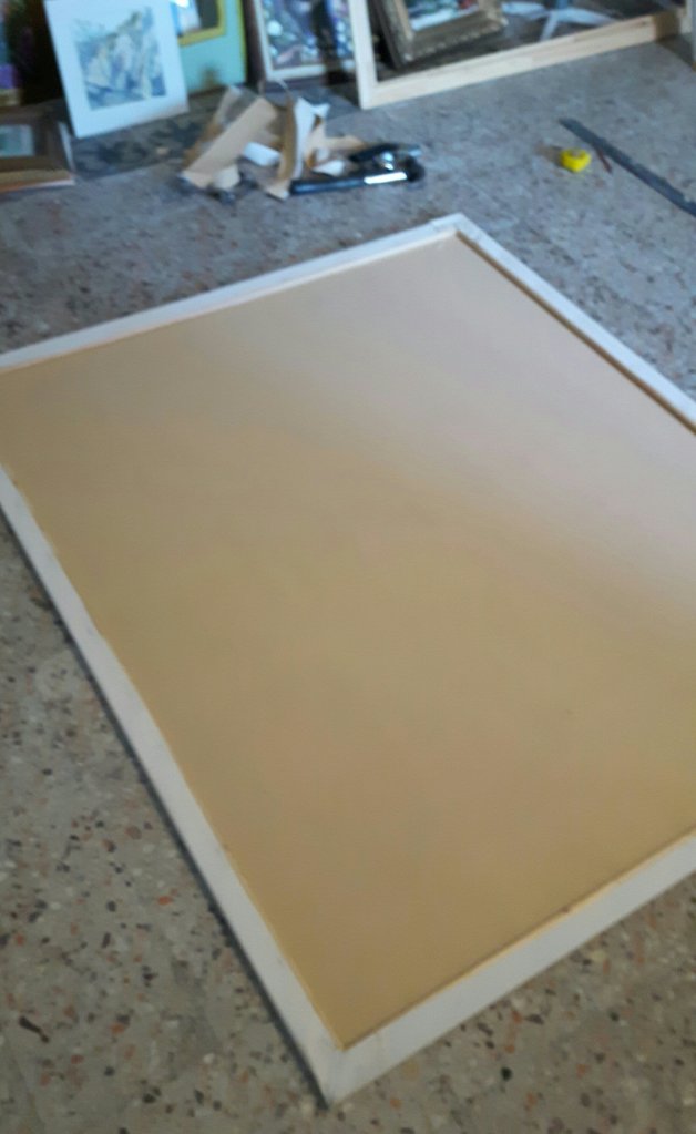 I thought that I would look out the stapler and other equipment and lay it beside the canvas through in my gallery. That would be progress. Then because I didn’t have to I tried fiddling about with the stapler. I spent over 30 minutes trying different staples, taking it to bits and finally I got it to work. I put in the first staple and considered stopping there. But I was on a roll. It took me another 45 minutes to staple all round , fold in the corners and then trim the edges. I was literally shaking when I finished . I was so surprised that nothing went wrong. So it’s now sitting up against the wall ready for me to use. Am quite impressed.