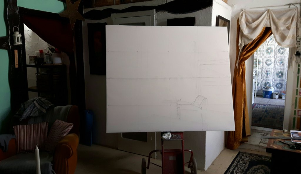 Today my plan was to start drawing my next painting . So after marking out the canvas in squares and marvelling at my ability to measure things wrong…..every time, I got started.