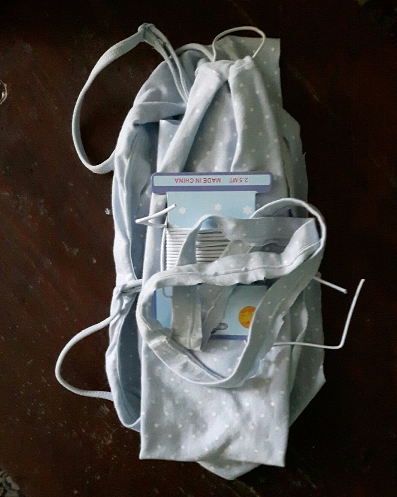 After that I decided maybe I should make a better effort at a mask. So I cut up a vest and followed the instructions but got bored half way through.