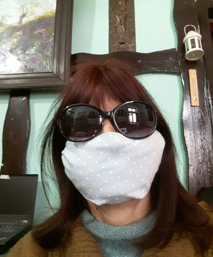 To make up for yesterday’s unsatisfactory feeling I thought I would have another try at making a mask and with a lot of fiddling about and tying knots in elastic and then untying them because I had made the loops too big I eventually managed something half reasonable. My glasses steamed up when I put it on and am not sure I can breathe….so what with possibly bumping into people and cars and not being able to breathe it might be more dangerous than the virus. Sigh!!!