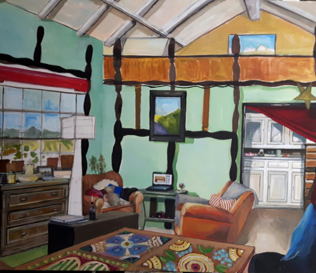 But my big painting went better today. I still feel a bit naughty when I paint whatever bit I feel like with no particular method other than I am in the mood to paint this little bit or that particular corner. So today I painted among other things my laptop and glass of wine. I even painted the screen as it was . Now all the canvas is covered and what I have to do next is paint everything in more detail. It looks like it could be ok.