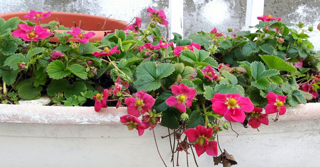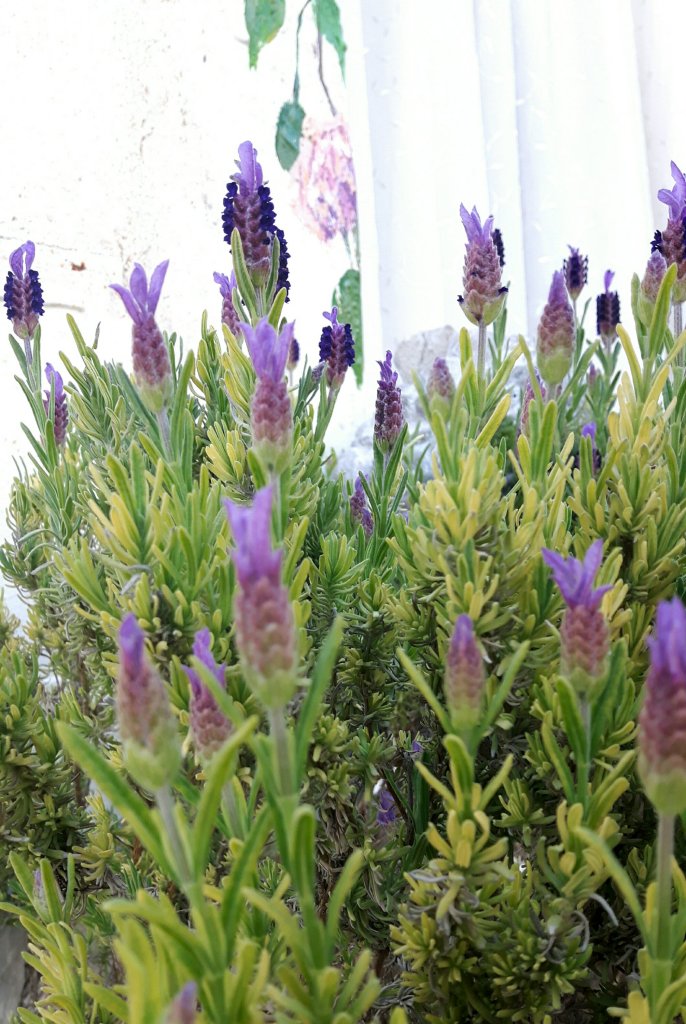 So on to gardening , which is related, as I have rearranged my plants again to make it more unlikely that anyone will walk through them to the end of the street. ( making me feel safer.)I am thinking of them as a flower-block! It doesnt hurt that they are looking better every day. And today my first rose bloomed , the lavender is flowering, my five year old strawberry plants are flowering still after all this time and the carnations are starting to flower as well.