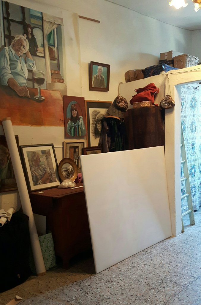 As the north wind was still blowing I thought maybe I should at least cut the canvas for my next big painting. . That didn’t take long and surprisingly the stapler was working so I put in a few staples. Unfortunately it didn’t look very stretched so I had to take them out again which is not easy and needed a lot of poking with scissors and quite a lot of swearing. Thereafter I watched a video on how to do it properly which in fact I had been doing. Some day I am going to buy good materials and stretchers and think how easy it actually is. The canvas which was from a roll 11mtrs long and about 160cms wide is quite stiff and has virtually no give whatsoever. The stretchers should have a cross support but I didn’t insist so they don’t.