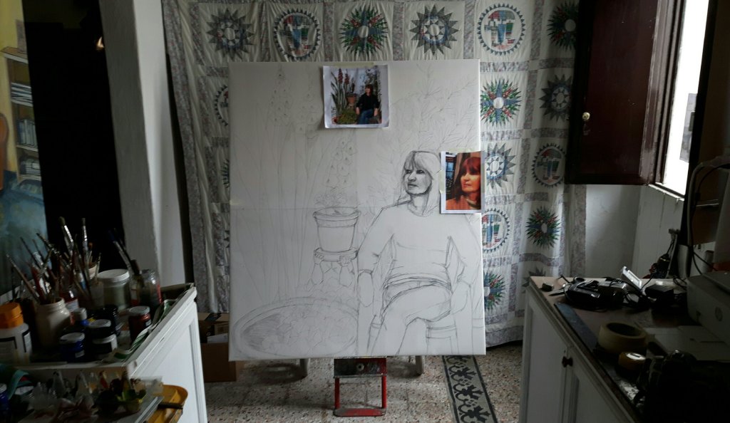My portrait is finally started. I decided to draw the flowers today and the background and then draw myself tomorrow as that would be the difficult part. Somehow though I have drawn myself and in particular my face and made quite a reasonable job if it. A very good example of tricking my mind into doing something I am afraid of. Tomorrow I can start painting. .