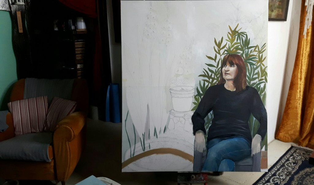 Then because it was miserable, grey and rainy I worked on my self portrait. I think I made my head too big so today I had to make the rest of myself bigger to match. There was no way I was going to make my head smaller as I am pleased with it . It was a little tricky and involved measuring and comparing things. Not my best subject. However I think it is better though I can imagine that tomorrow when I look at it with fresh eyes I might need to adjust some things. I like my jeans. Am pleased with how they have turned out. I am more less life size.