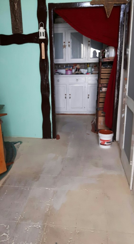 I’ve had proper floor paint since I moved back here last year but at first the floor was damp and then I quite liked the undercoat and just left it. But it has been looking a bit rough and even with rose tinted glasses I couldn’t even describe it as a distressed paint effect. I also think that I was a little embarrassed with myself because of being scared to go out so I thought I had better do something important to “big” myself up again.