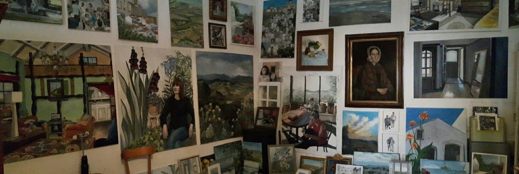 I was on a roll …so I thought I would hang it up with the others. Which involved moving lots of other paintings around so that the wall looked good. It would have been a shame to stop at one wall and besides it got complicated,so three hours later I had rearranged three walls and pulled out my bed sofa , tidied the top of the cupboard, got a whole lot of cardboard ready to throw out , tidied my workroom and brushed the floors.