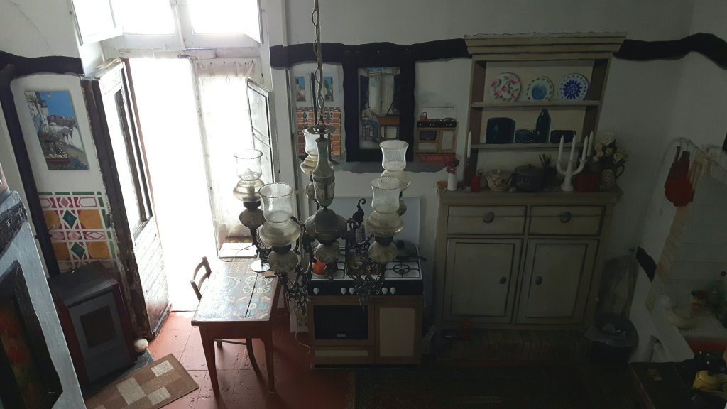 It was soon 11am and I had been meaning to extend , with paint, the dark brown curved planks on the walls . So that is done now.