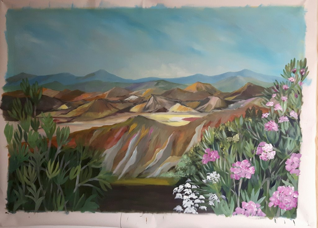 I decided to go for my allowed walk today to get some energy. I had to talk myself into it by saying I would take more photos .( Its a view from the red brick road that I am painting.) I must have stopped at least 10 times before I got to the top and wasn’t even out of breath. Am not sure it would even qualify as exercise. Have rationalised that it is my mental health that I am exercising.