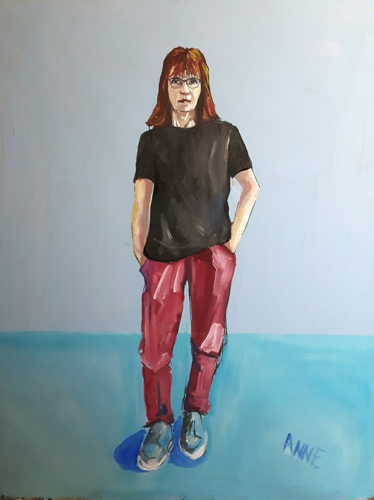 This week has been a lot about David Hockney and I watched some more short videos and then decided there was nothing stopping me going and fixing my big portrait that looks vaguely similar to some of his. That was fun. I now look like I am in somewhere not just in space. I painted the bottom a little darker colour and gave my feet shadows. I am pleased with it.