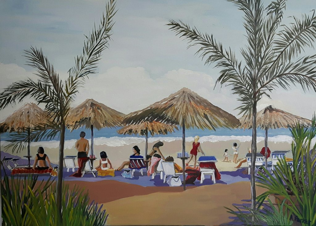 It must have been seeing the timetable for the beach bus that reminded me of a painting that I had been considering painting over which was of the beach. It just wasn’t right somehow. After all my screen painting experience I thought I would give it one last chance. I think I have finally fixed it. It looks about 80% how I imagined it should. So it’s safe from the white emulsion for now.