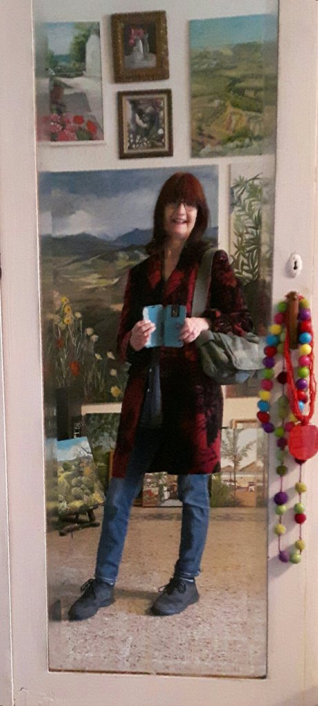 Yesterday evening I found my jeans, my favourite black shirt and a long red patterned velvet jacket to go with my ” sentimental ” trainers. And then my 2 escorts for the evening appeared bearing gifts of chocolate and wine. After a glass of wine together we set off for a celebratory proseco before finding somewhere to eat. So I strolled uptown accompanied by 2 attractive single male friends and ate in one of Pisticci’s pizzerias before walking back through the crowded corsa and stopping for an amaro lucano in the bar in the piazzetta. On the way home we stopped to talk to a good italian friend and discussed manly things ( machines) while I translated the occasional word. Then we parted company and I walked down the street to my little studio covered in flowers……what a lovely evening. And to my surprise every word of that is true.