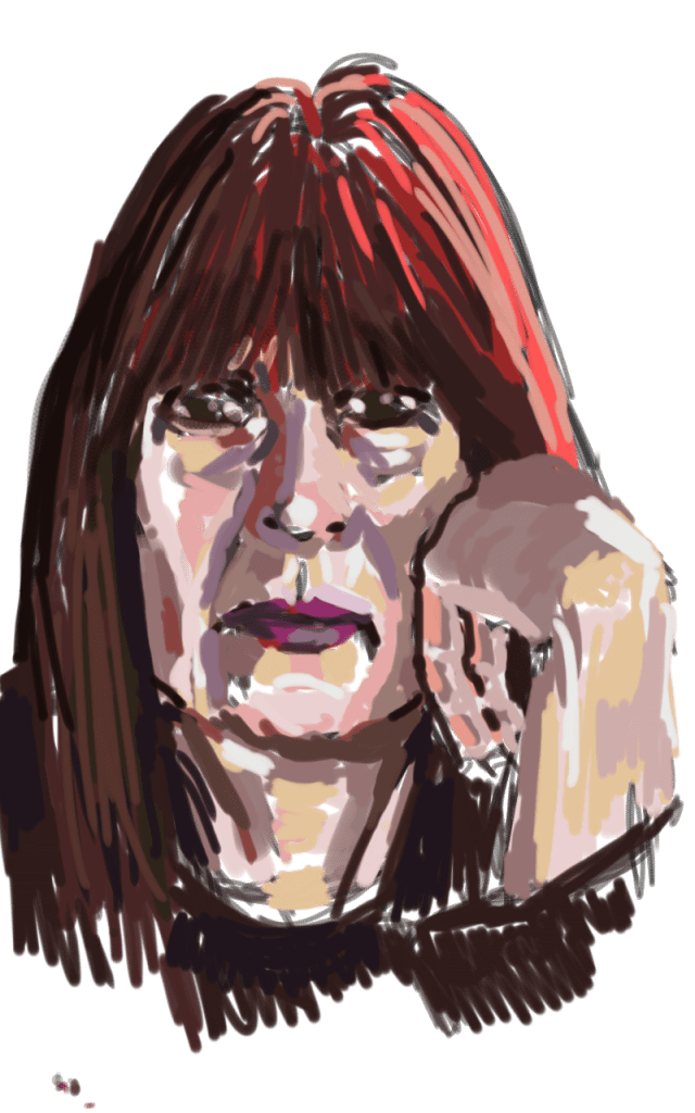 Oh and I even had time (and energy ) to do another portrait on my kindle fire ( its now decided it will send emails again.) My aim was to see if I could make myself look a bit more cheerful. It was a failure in that respect. But at least I tried.