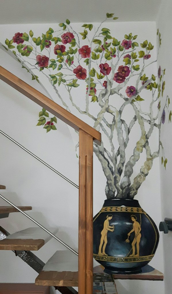 But ….and now I think I am safe to say I didn’t spill paint or water or damage anything. I think I was more worried about that that than the actual painting. And I didn’t step back and fall down the stairs . ( I once put a chair on a table to paint a bit of high up wall and stepped down forgetting the chair was on a table. Had black and blue legs all summer. )