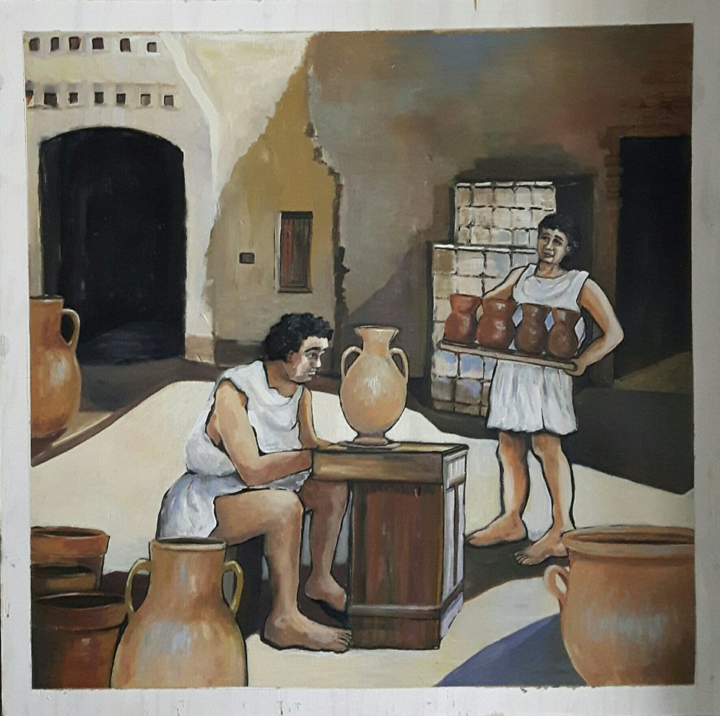 I carried on with my panel pottery painting today. It has changed again as I added a few things , tidied up others and straightened the potters table so it doesn’t look like it will fall over. I think I am close to finishing.