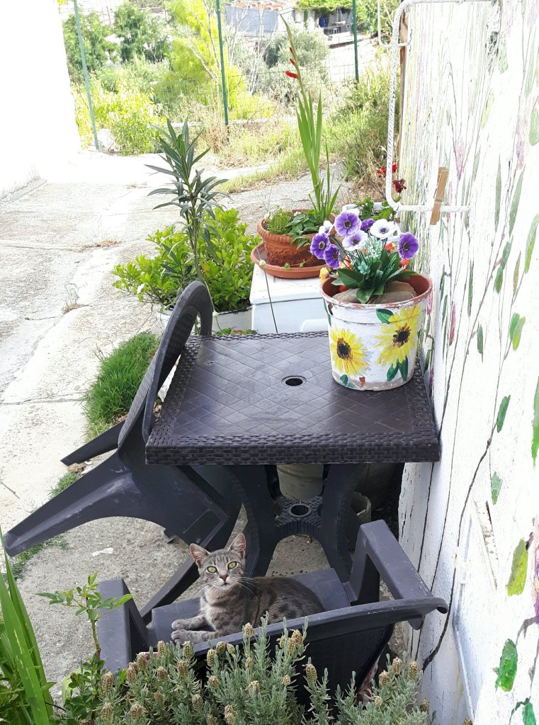I was going to sit outside and write this but the little cat was on my chair. I made it move at breakfast time so I thought I’d better let it stay this time. I would like it if it was more friendly but it’s still very timid.