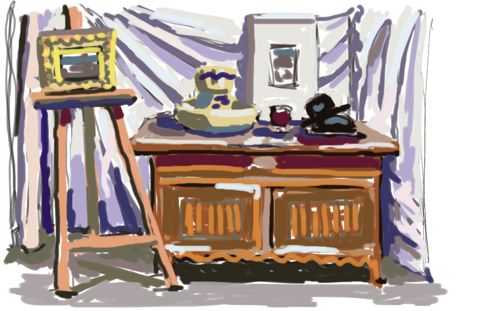 I had my little kindle sketch to inspire me and the real objects in front of me. This time a photo would not have done. ( It’s very interesting , for me, to keep learning new things) The idea for still lives came from a painter I saw on the internet but the realisation that I could make something lively came from doing a preliminary sketch on my kindle.