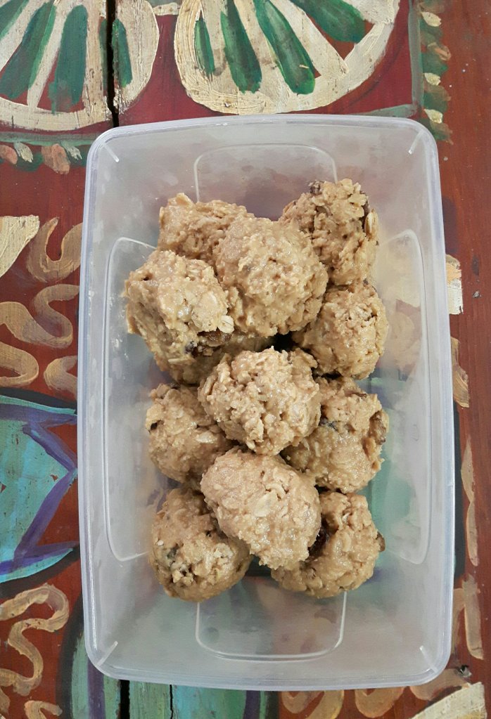 Around 4pm I got tired and thought I could either have a sleep or make some energy things .( little balls made of peanut butter, sultanas and porage oats) They are in the fridge now as they don’t need cooking.