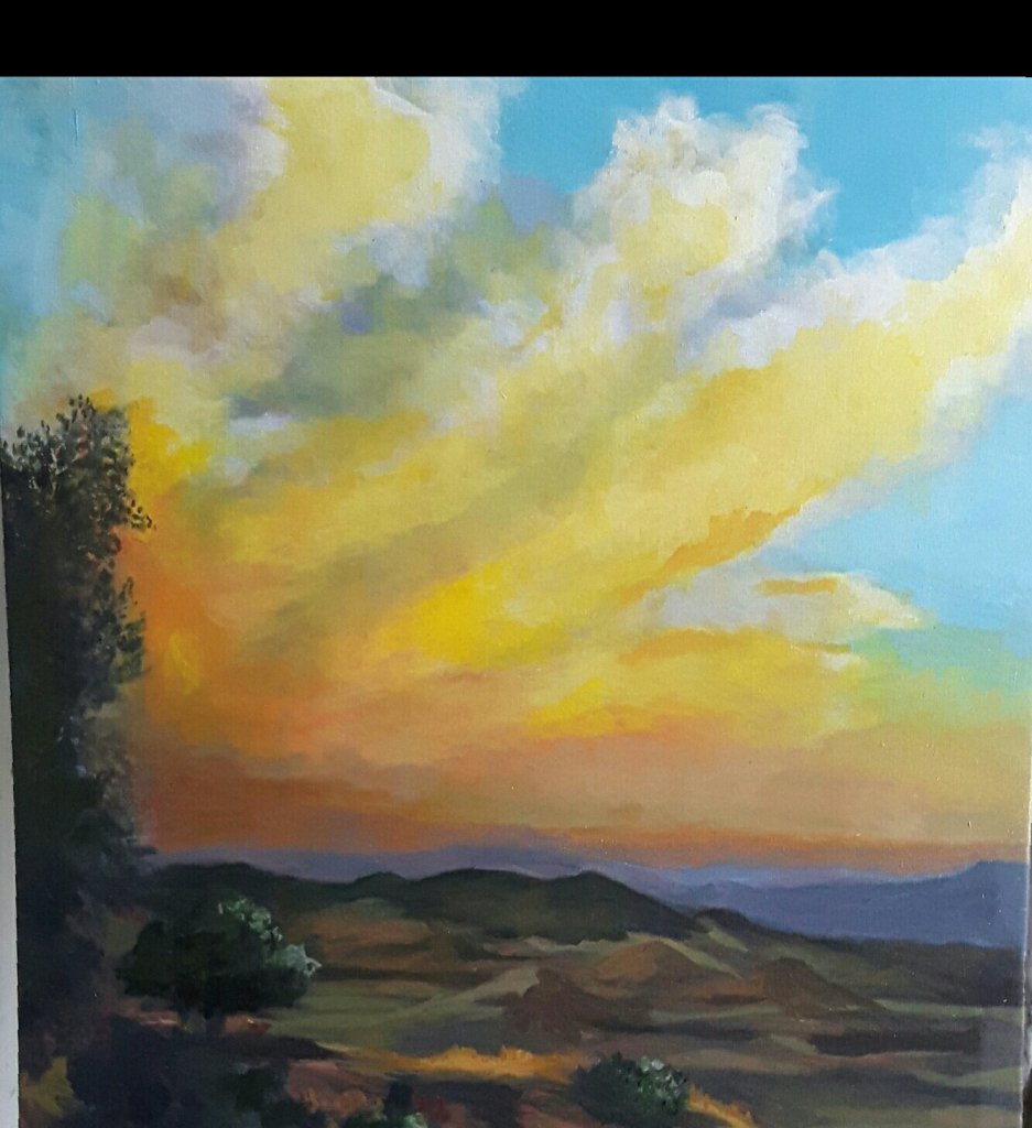 After repainting and improving the painting I was a little distressed to see how crumpled it still was. So got on youtube to see what I could do. First amid much bad language I took some staples out and pulled the canvas tighter. It looked worse. Plan b. I boiled some water and got a sponge and wet the back of the canvas and then dried it with a hairdryer. ( should have sprayed it with hot water but didn’t have a spray.)