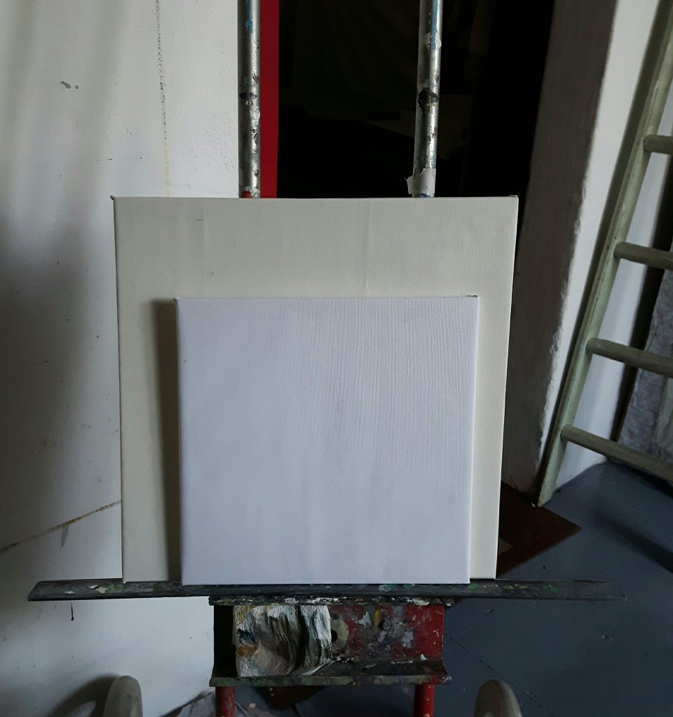 This time I had to do 50x60cms. It changed the shape of the painting as I hadn’t left enough edge to fold over. But I did it and was so pleased with myself that I made a small 30×30 one with the leftovers.