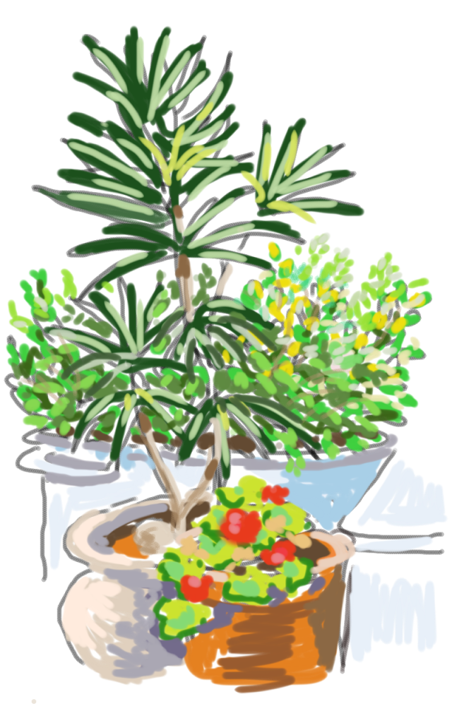 It was Sunday and I am “virtually “on holiday…..got a portrait commission last night……so it was nice to have a slow start. I sat outside and thought I would check if I could see my screen well enough in the sunlight. And before I knew it I had a little sketch of my baby oleander and some other plants. I love the way I need to be confident drawing on the screen . And I love the colours. No muddy colours because I forgot to clean my brush or the water was dirty or the paint mixed on the canvas. And the black background is fun.