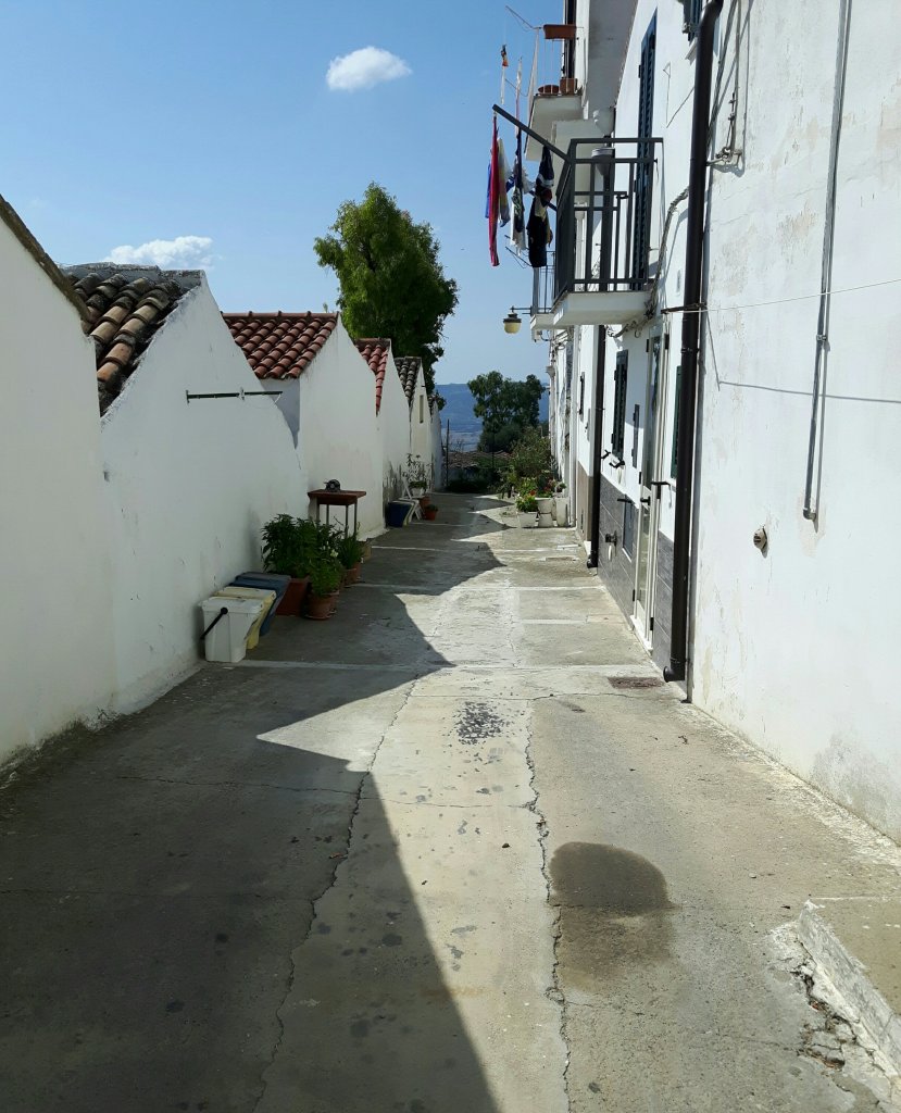My plan was to sit outside the castle at the top of the hill and chat for a while and maybe let her see the view of Pisticci and even point out my house. But the church bells were so loud …….