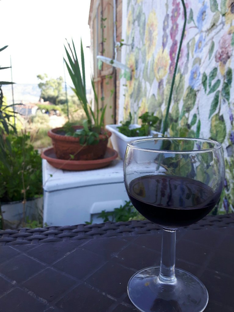So I started the day sitting outside with a coffee and now I am starting the evening outside with a glass of wine.