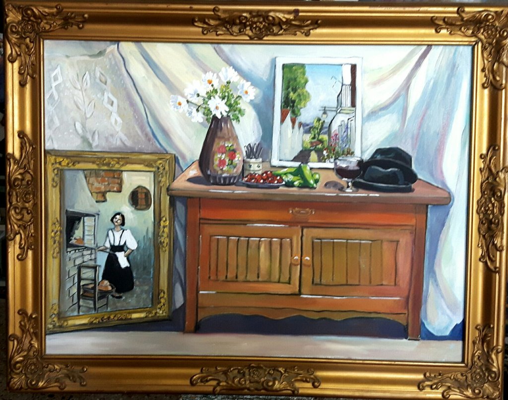 This afternoon was spent working on my latest still life. It needs a few things fixing but I have tried it in the frame and it fits perfectly. I am considering painting local food next.