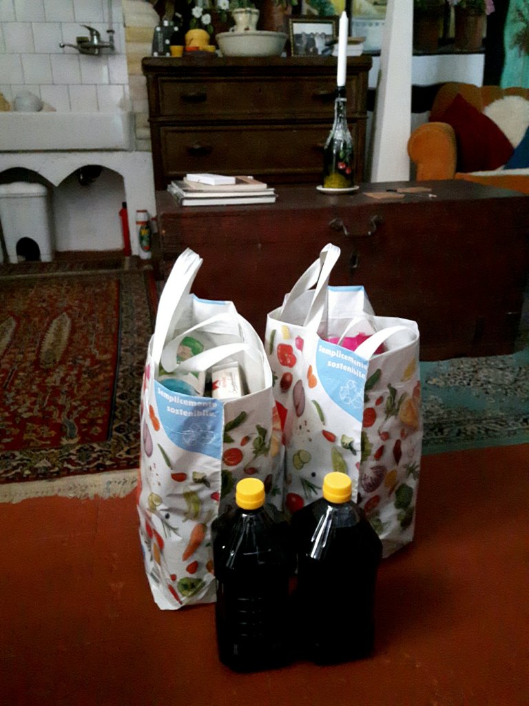 I came home with 7 bars of chocolate, 6 bottles of lemonade, 4ltrs of wine , and various other sensible things, including, lentils, beans, pasta, curry powder, tinned olives etc etc.