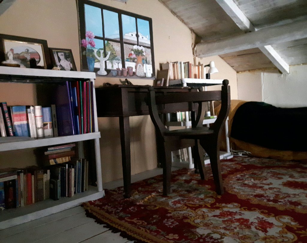 However I kept my favourites and they are upstairs in my attic bedroom. And today I thought I should clean it before I moved back there for the winter. So as well as hoovering the beams, the ceiling, the bed covers and the floor…..I took all the books out and hoovered them too. It’s looking very pretty and smells of honey. I bought some kind of spray cleaner which might be beeswax. It’s a bit strong….which is partly why I am sitting outside.