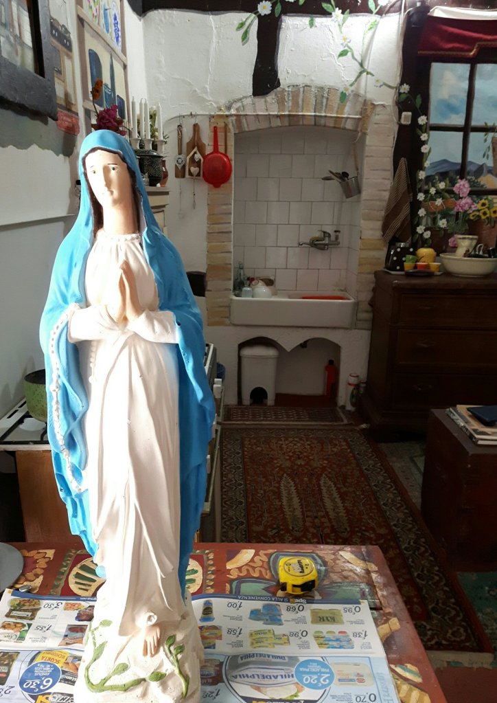 When I got back I painted a saint. It was a bit faded after being in the sun for the last few years so I brightened it up. Will varnish it tomorrow. It belongs to my neighbour. It felt like a very neighbourly thing to do.