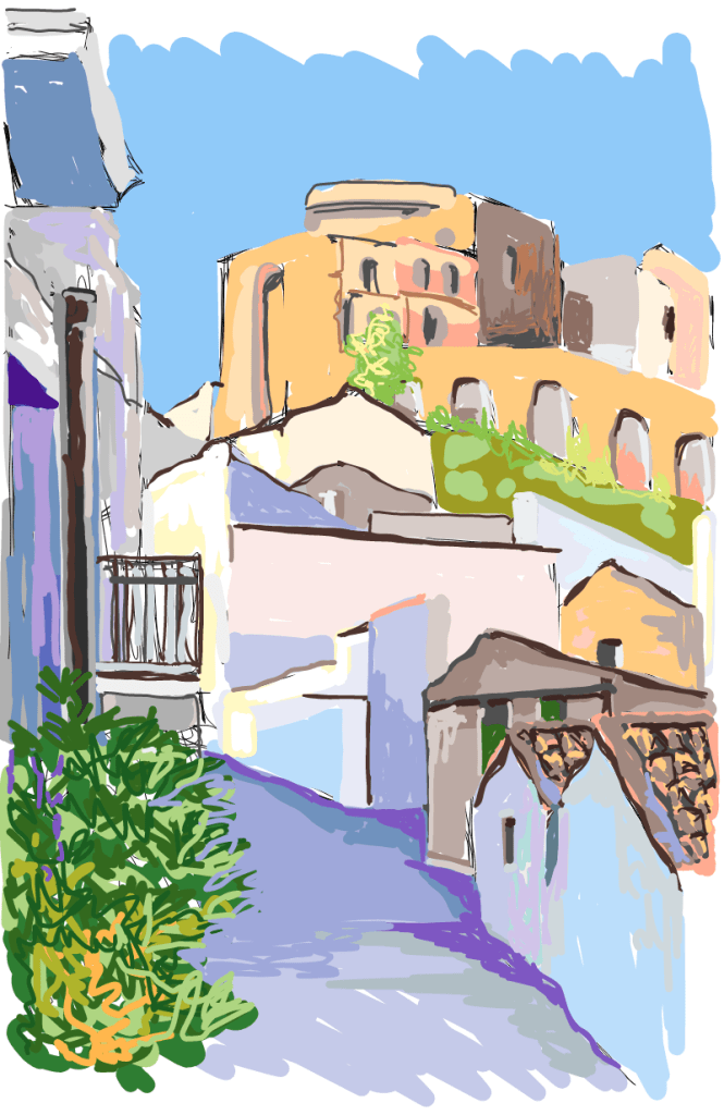 I did a little work on yesterday’s tablet drawing from a photo as it was a bit dull this afternoon. But the photo was so dark compared to the real scene yesterday that it was a little dispiriting.