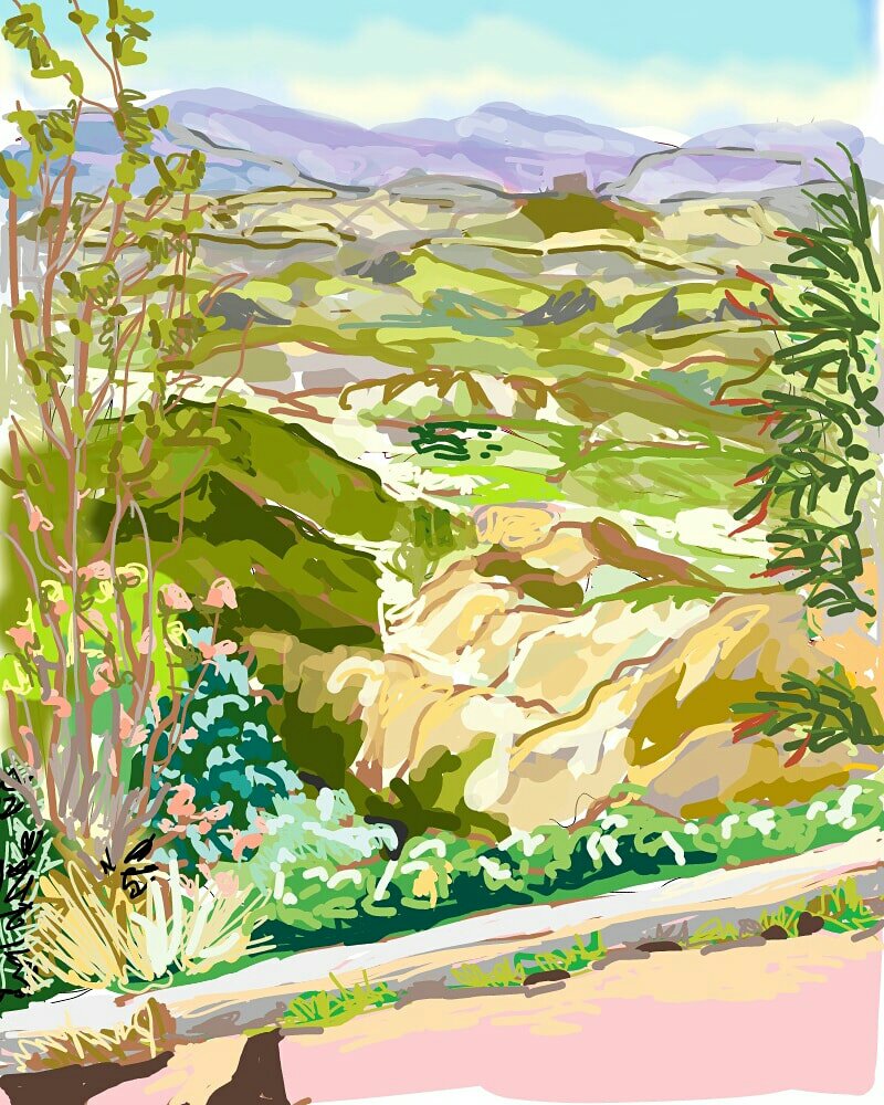 I finally went up the pink brick road and took photos of the trees at either side of the scene I had begun drawing and finished what I had started from life. I am pleased with it.