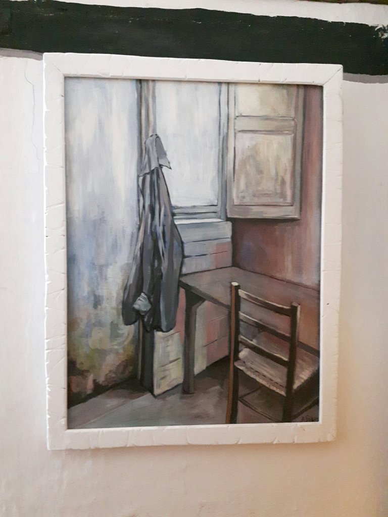 Like, moving my favourite painting out of my workroom and into this room where I will see it more often. It has my empty art table and my writing shirt hanging on the door. I have sold a copy I did of it because it’s not for sale.