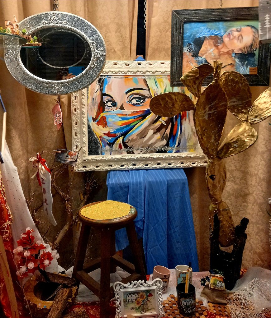 As I was walking past my friend’s art shop I stopped, as there was my painting in her window. It looked good. So I took a photo.