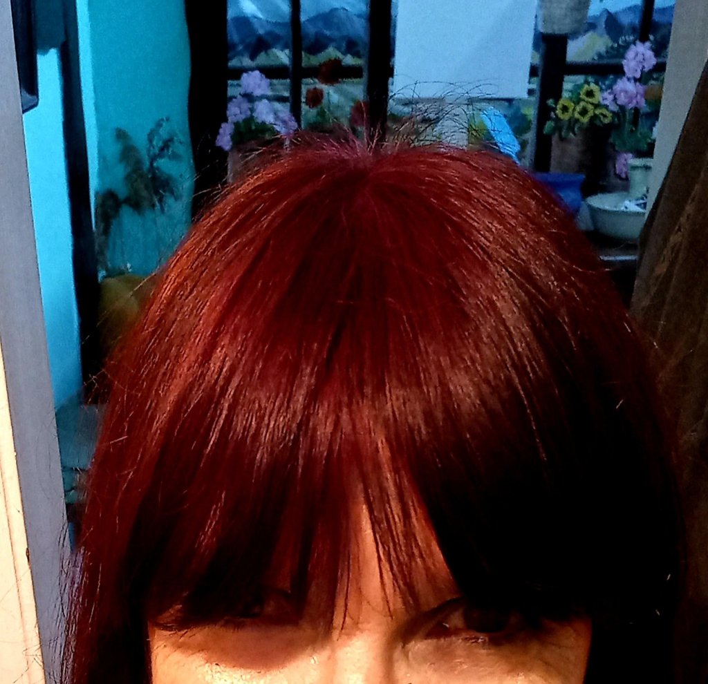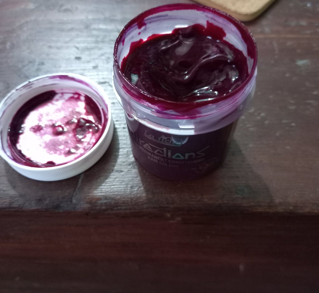 It started with hair dyeing using the dangerous red gel….I have now discovered that nail polish remover will take the colour off my hands or anywhere else. I remembered to use vaseline round my hairline. That helped. It looks like the little tub of colouring gel will last for ages. It looks eatable …..like some type of delicious jam. And this time I rinsed it more thoroughly so it didn’t come off on my hands afterwards.