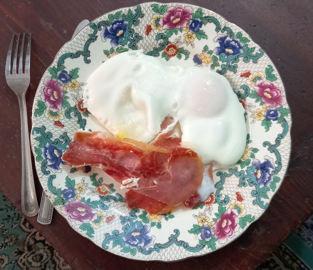 I was so pleased with myself that I treated myself to facon and eggs. I am getting much better at cooking this.